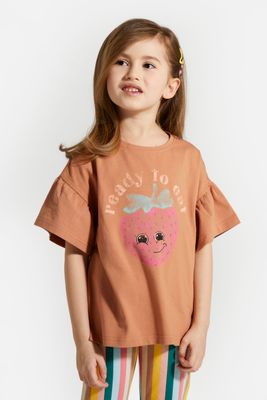 COCCODRILLO T-shirt z krótkim rękawem - brązowy z nadrukiem truskawki - rozmiar 104 - dla dziewczynki