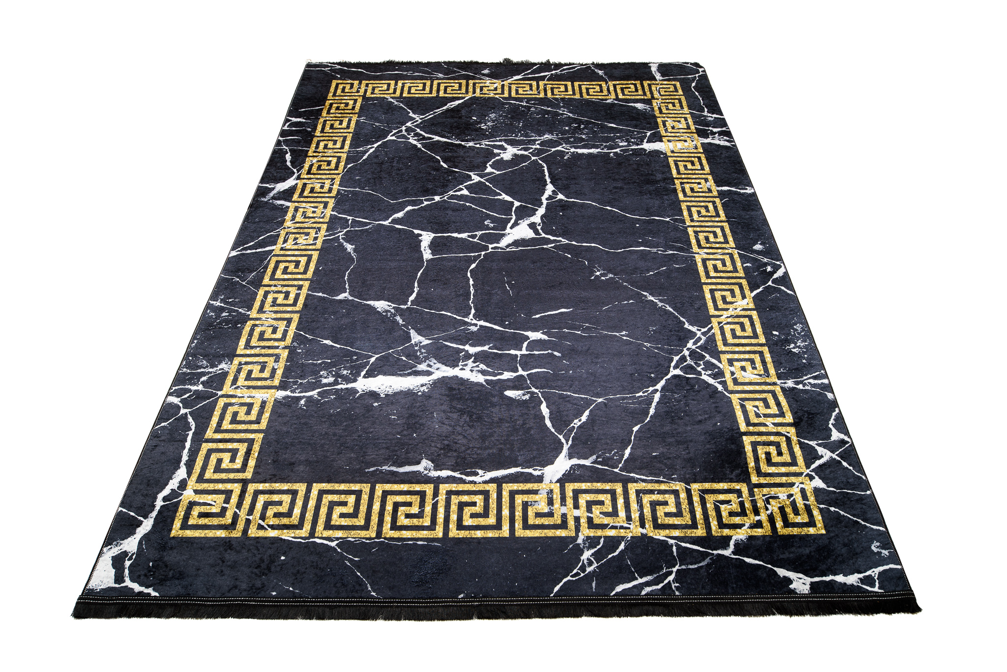 Makro Abra Kusový koberec pratelný TOSCANA 23020 Klasický Mramor pogumovaný černý zlatý Rozměr: 120x170 cm