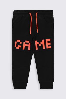 COCCODRILLO Spodnie dresowe - czarne z napisami o fasonie SLIM - rozmiar 92 - dla chłopca