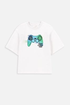 COCCODRILLO T-shirt z krótkim rękawem - biały z gamerskim nadrukiem - rozmiar 104 - dla chłopca
