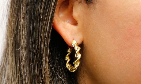 Italian Sterling 25MM Twisted Hoop Earrings None Sterling 18K Yellow Gold in Silver | One Size