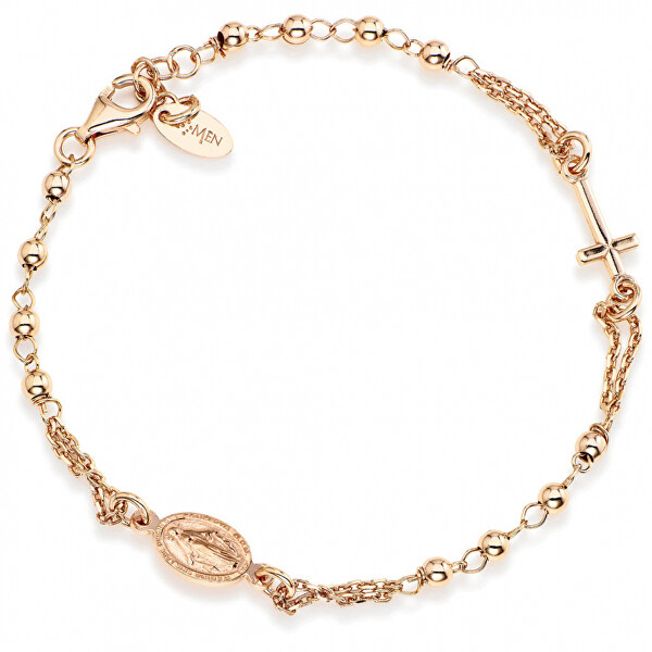Amen Rózsaszín aranyozott ezüst karkötő Rosary BROR3