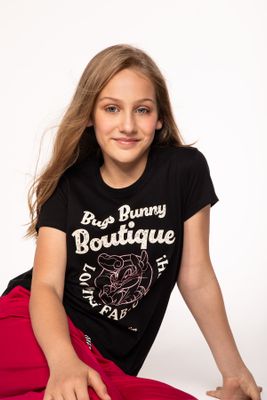 MOKIDA T-shirt z krótkim rękawem LOONEY TUNES - czarny z nadrukiem - Królik Bugs - rozmiar 104 - dla dziewczynki