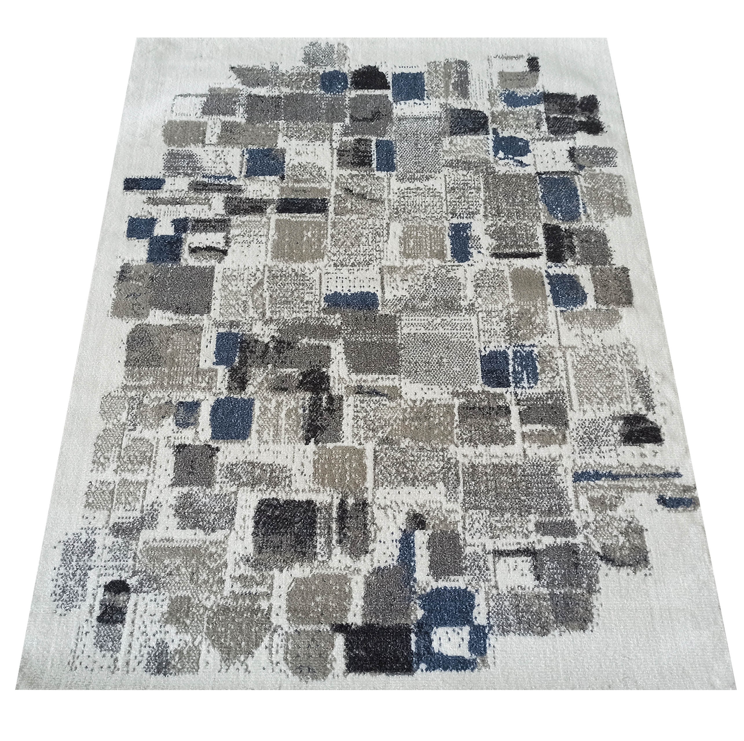 Makro Abra Kusový koberec LARA 04 Moderní krémový šedý modrý Rozměr: 60x100 cm