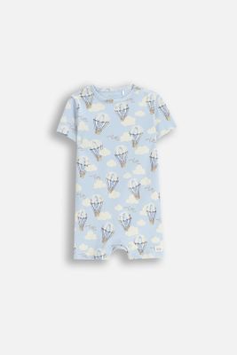 COCCODRILLO Pajac z krótkim rękawem - błękitny z nadrukiem balonów na całości - rozmiar 56 - dla chłopca