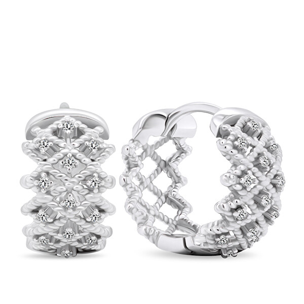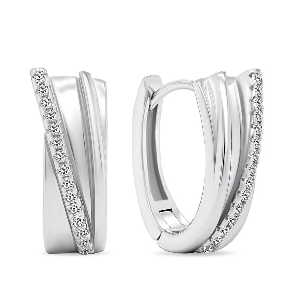 Brilio Silver Stílusos ezüst karika fülbevalók cirkónium kövekkel EA454W