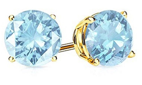 Paris Jewelry 14k Gold Plated Round Cut 9mm Aquamarine Stud Earrings Blue 9 MM Round 4 1/2 ct Aquamarine in Yellow | One Size