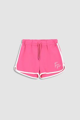 COCCODRILLO Krótkie spodenki - fuksja ze sznurkiem w pasie i nadrukiem na nogawce - rozmiar 92 - dla dziewczynki