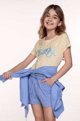 MOKIDA Szorty dresowe - żółte krótkie spodenki bawełniane - rozmiar 104 - dla dziewczynki