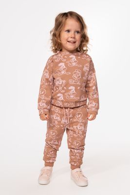 COCCODRILLO Spodnie dresowe - brązowe z printem, licencja LOONEY TUNES - rozmiar 74 - dla dziewczynki