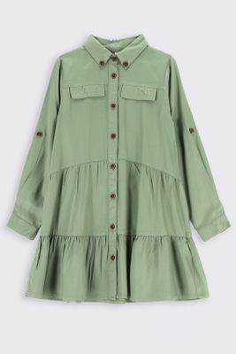 COCCODRILLO Sukienka tkaninowa - zielona rozkloszowana z kołnierzykiem - rozmiar 98 - dla dziewczynki