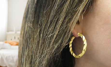 Ladies Solid Sterling Twisted Hoop Earrings 3 Options Sterling 18K Yellow Gold in Silver | One Size
