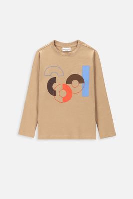 COCCODRILLO T-shirt z długim rękawem - beżowy z graficznym napisem - rozmiar 104 - dla chłopca