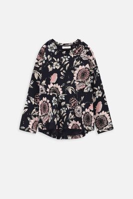 COCCODRILLO T-shirt z długim rękawem - wielokolorowy z kwiatowym printem i falbaną - rozmiar 104 - dla dziewczynki