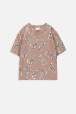 COCCODRILLO T-shirt z krótkim rękawem - brązowy z roślinnym nadrukiem - rozmiar 104 - dla dziewczynki