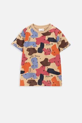 COCCODRILLO T-shirt z krótkim rękawem - beżowy z kolorowym printem i napisami - rozmiar 104 - dla chłopca