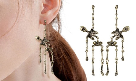Costume Halloween Hanging Skeleton Drop Stud Earrings Alloy in Silver | One Size
