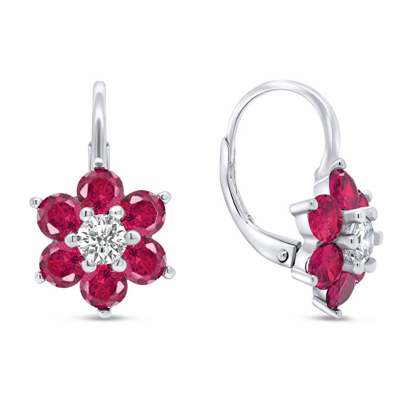 Brilio Silver Játékos ezüst fülbevalók vörös cirkónium kövekkel Virágok EA307WR
