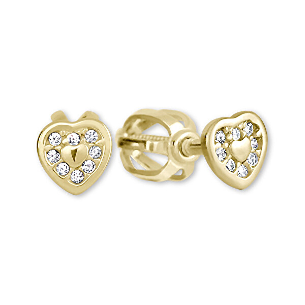 Brilio Zlaté náušnice srdce s kryštálmi 239 001 00738