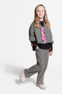 COCCODRILLO Spodnie tkaninowe - wielokolorowe w kratkę z rozszerzaną nogawką - rozmiar 164 - dla dziewczynki