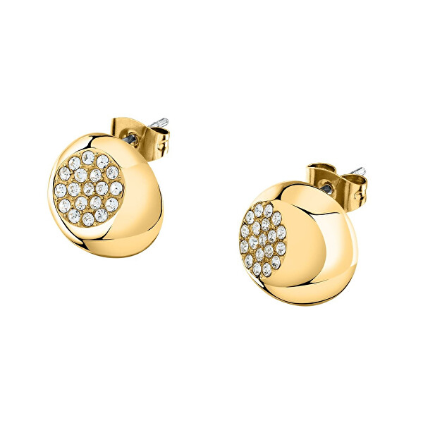 Trussardi Pozlátené kruhové náušnice so zirkónmi T-Logo TJAXC87