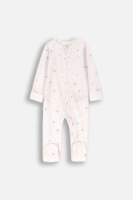 COCCODRILLO Pajac ze stopami - ecru z uroczym nadrukiem na całości i niedrapkami - rozmiar 62 - dla dziewczynki