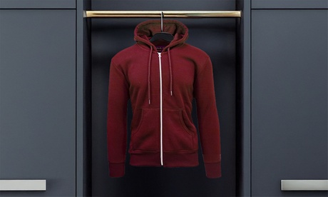 MenFleece-Lined Hoodie & Jogger 2-Piece Top & Bottom Set in Red | Medium