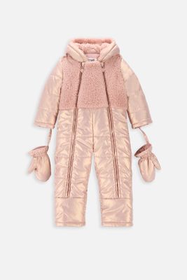 COCCODRILLO Kombinezon zimowy - pudrowy róż z kapturem, rękawiczkami i bawełnianą podszewką - rozmiar 74 - dla dziewczynki