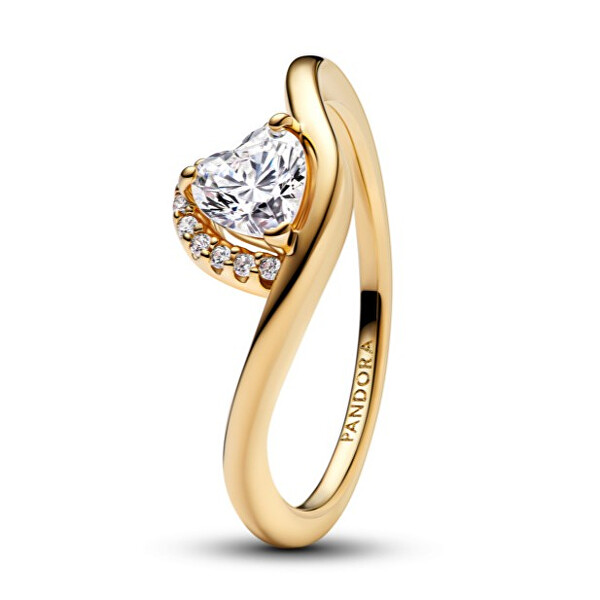 Pandora Romantický pozlátený prsteň Zvlnené srdce Shine Timeless 163660C01 58 mm