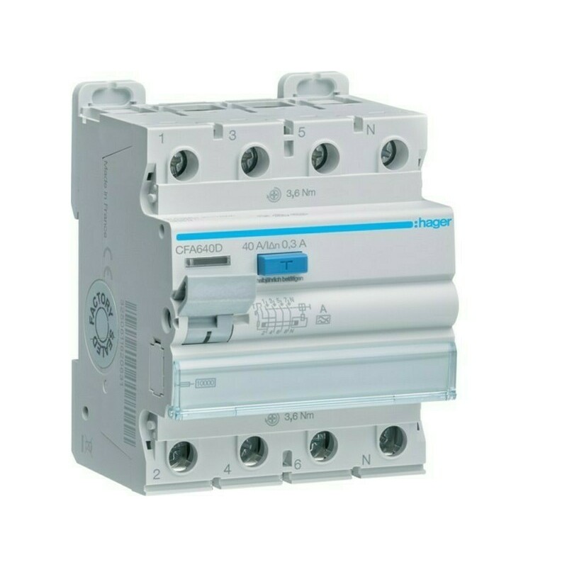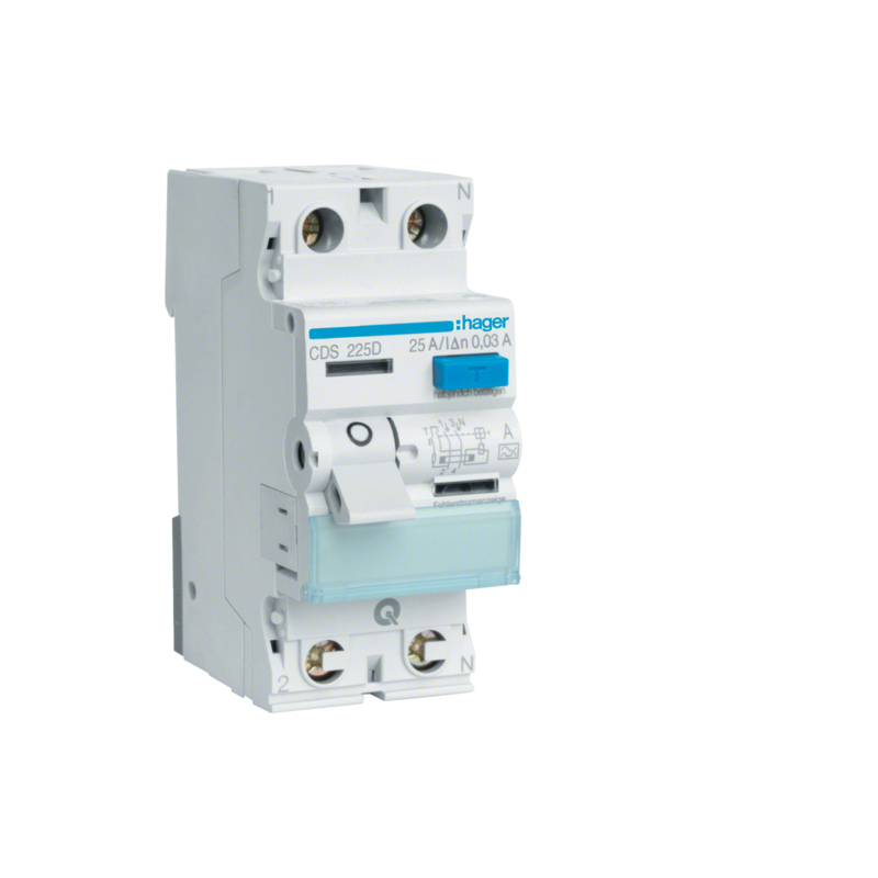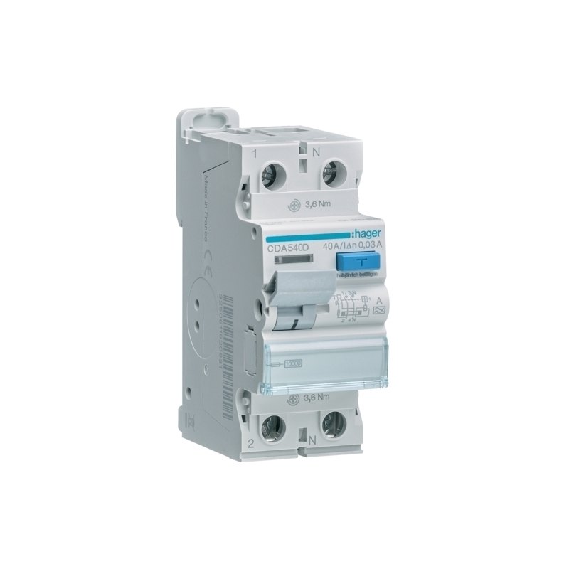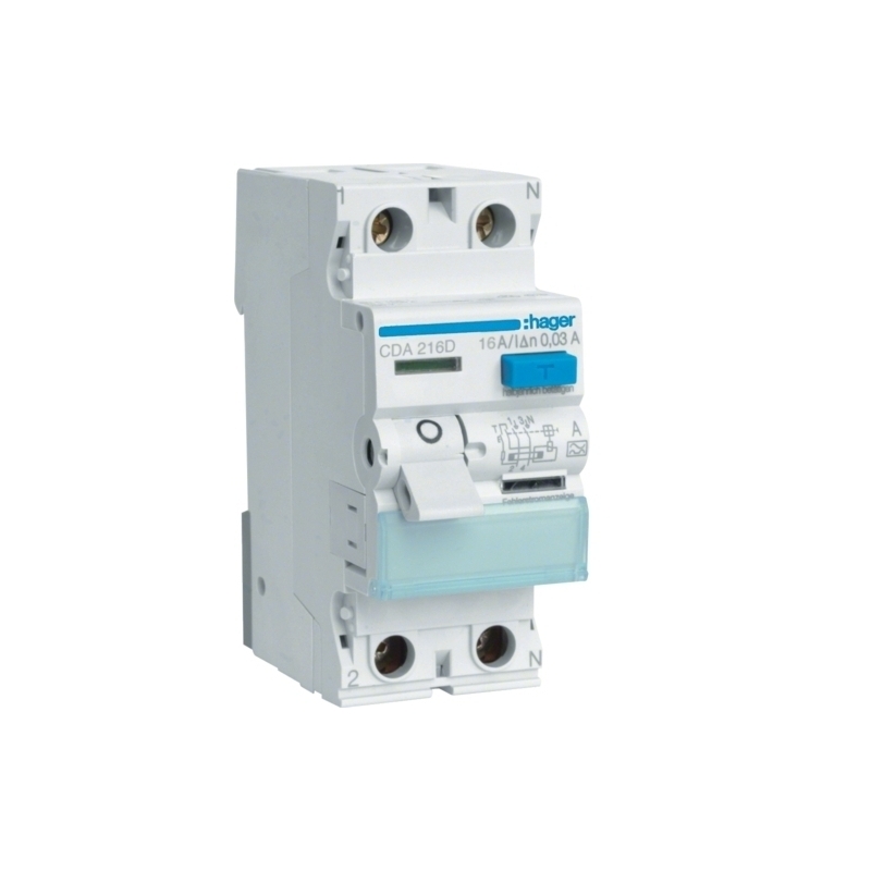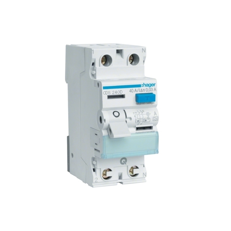 Chránič proudový bezšroubový s jištěním Hager ADS966D