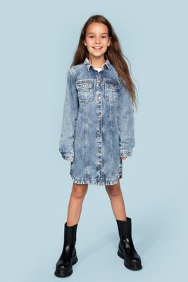 COCCODRILLO Sukienka jeansowa - niebieska z kieszeniami i kołnierzykiem - rozmiar 146 - dla dziewczynki