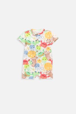 COCCODRILLO Pajac z krótkim rękawem - wielokolorowy z nadrukiem na całości - rozmiar 62 - dla chłopca