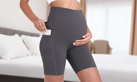 WomenMaternity Yoga Shorts Summer Workout Running Active PantsGrey in Black | Small