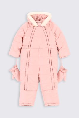 COCCODRILLO Kombinezon zimowy - różowy ze stopami i kapturem - rozmiar 68 - dla dziewczynki