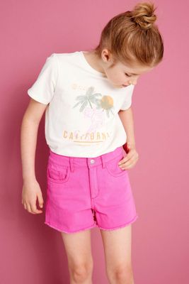 NAME IT Szorty tkaninowe REGULAR FIT - różowe z postrzępioną nogawką - rozmiar 140 - dla dziewczynki