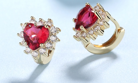 Ruby Heart with Omega Lever-Back Closure in 14K Plated Ruby 3 ct Ruby July Brass Plated in Gold | One Size