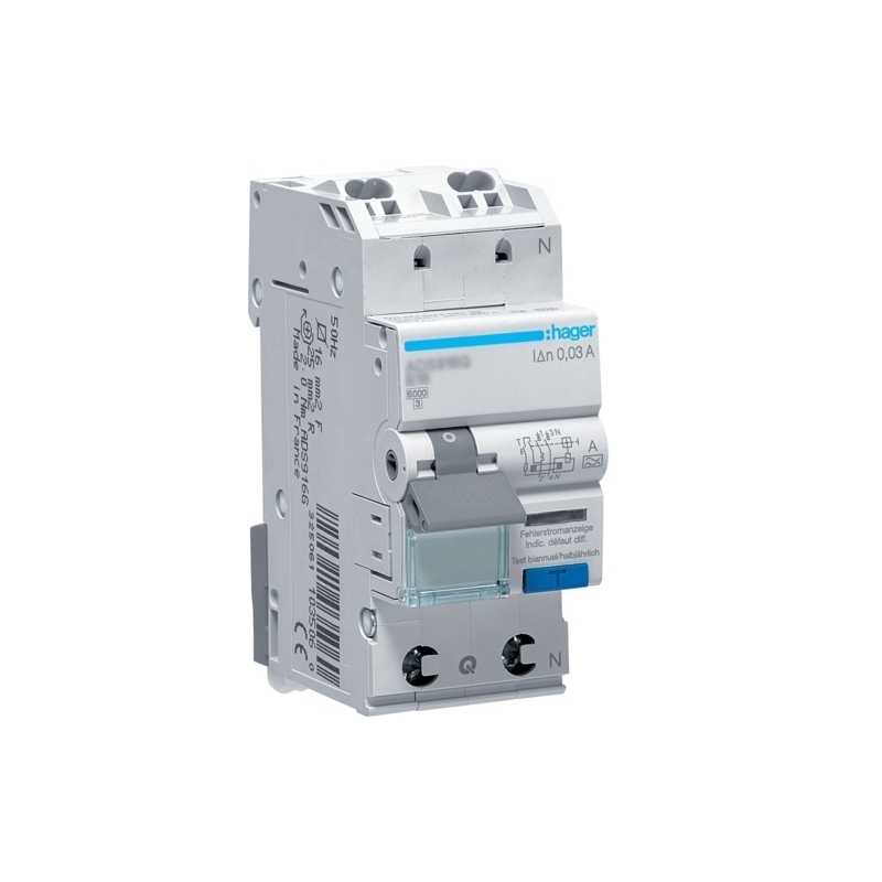 Chránič proudový bezšroubový s jištěním Hager ADS916D