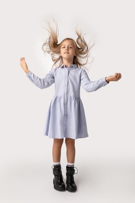 COCCODRILLO Sukienka tkaninowa - niebieska z paskiem i kołnierzykiem - rozmiar 140 - dla dziewczynki