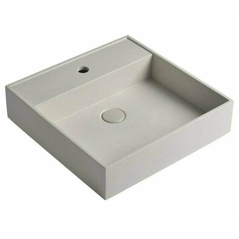 Umyvadlo betonové na desku Sapho Quadrado 460×460 mm včetně výpusti, bílý pískovec AR469