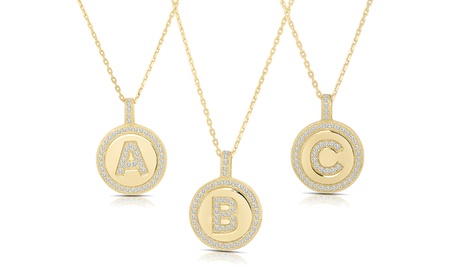 Crystal Round Disc Initial Pendant Necklace in 14K Plated W Crystal Crystal Under 1/10 ct Sterling Silver in Gold | One Size