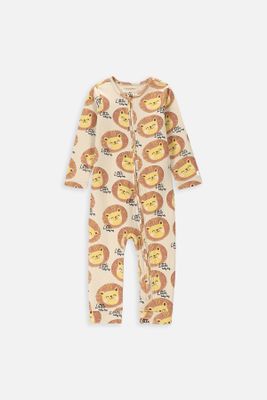 COCCODRILLO Pajac bez stóp - beżowy, zapinany na zamek - rozmiar 86 - dla chłopca