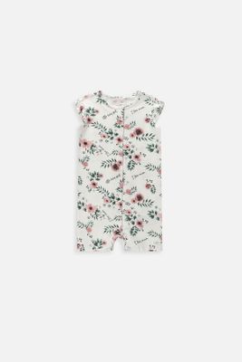 COCCODRILLO Pajac z krótkim rękawem - ecru z nadrukiem w kwiaty - rozmiar 80 - dla dziewczynki