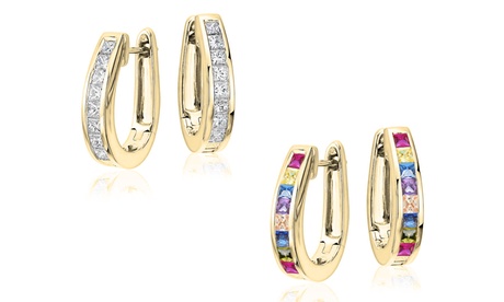 Oval Hoop&Princess Stud Earrings Set with Cubic Zirconia Stones Brass Crystal Princess 18K Gold in White | One Size