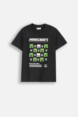 COCCODRILLO T-shirt z krótkim rękawem MINECRAFT - czarny z nadrukiem z przodu i z tyłu - rozmiar 152 - dla chłopca