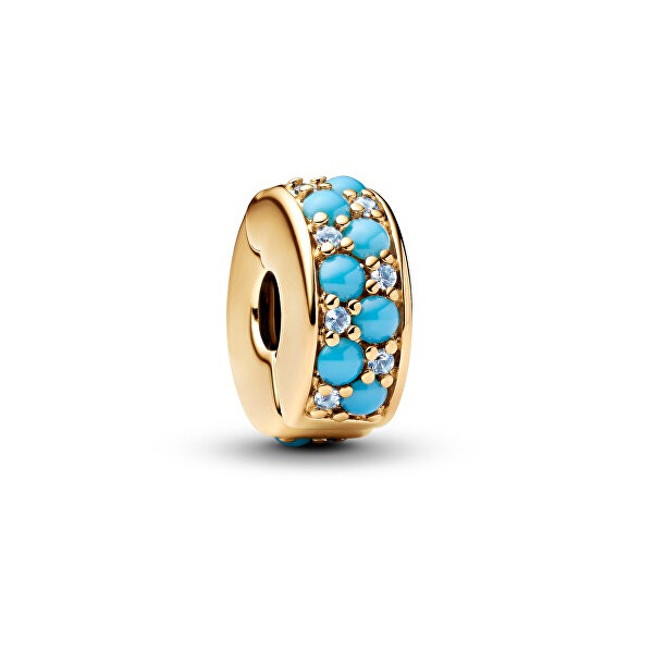 Pandora Pozlátený klip Azúrová modrá Shine Moments 292334C04