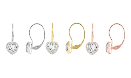 2.00 CTTW Heart Cut Leverback Earrings With Crystals From Swarovski None 2 ct Brass Crystal Rose in Gold | One Size