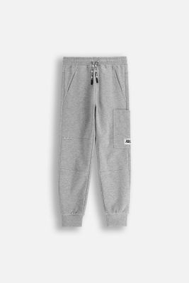 COCCODRILLO Spodnie dresowe - szare z kieszeniami i wiązaniem w pasie o fasonie REGULAR - rozmiar 134 - dla chłopca