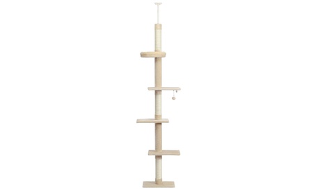 9 Feet Three Tier Floor-to-Ceiling Cat Tree Cat Climbing Tree in Beige