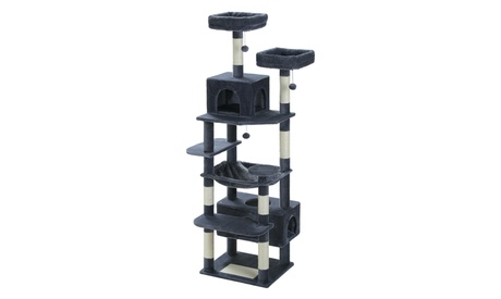 72 Cat Tree for Cats with Condo Hammock&Scratching Posts drak gery in Black | Large