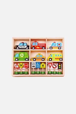 TOOKY TOY Zestaw Pojazdów i Znaków Drogowych - drewniany 3+ - rozmiar ONE SIZE -